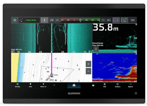 Рыба в потрясающем высоком разрешении благодаря встроенному эхолоту xCHIRP мощностью 1 кВт и системе Garmin RapidReturn™. Превосходное разделение целей позволяет четко видеть рыбу со всех сторон.
