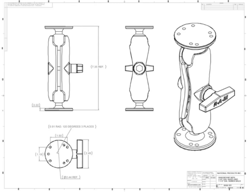RAM-101U состоит из 1,5-дюймового кронштейна средней длины с размером C 1,5" и двух круглых шаровых оснований диаметром 2,5", которые содержат универсальную схему отверстий AMPS. Система шаровых патронов обеспечивает амортизацию ударов и вибраций, а также обеспечивает почти бесконечную регулировку для достижения идеального угла обзора и управления вашим устройством.