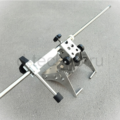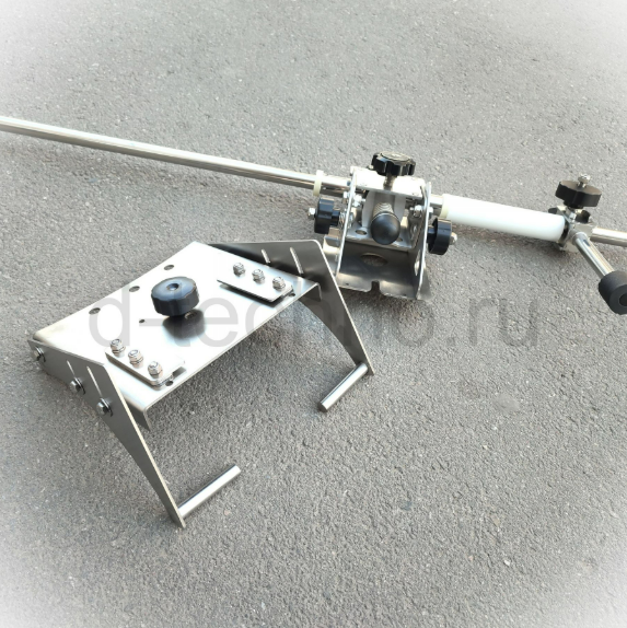 Само основание имеет регулировки, регулируется по углу наклона в пределах 17 градусов и вылету в пределах 2 см, (это необходимо, если немного не рассчитали приклейку пятаков на борт лодки и надо выровнять основание в горизонт).